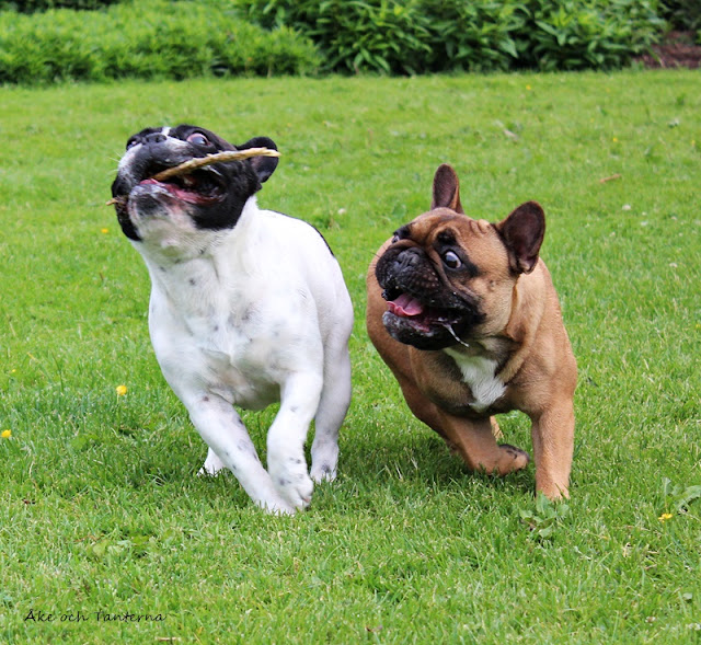 När jag igår gick och deppade som mest över min hundlösa situation ringde mobilen... Sonens F var i andra luren och hon frågade om jag hade lust att komma till Stadsparken och träffa 11x2 kg kärlek... Bill och Asta.