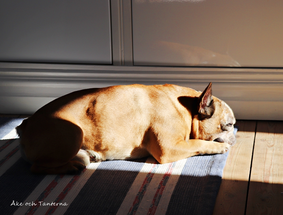 T och Julia somnade på "solhyllan". Jag hörde hur de snusade och snarkade båda två. Uppenbarligen behövdes inte något mjukt att sova på.